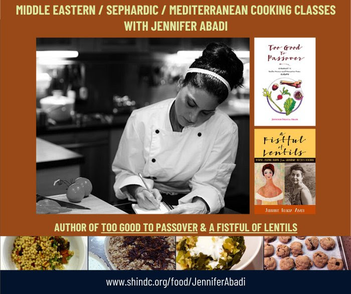 Jennifer Abadi lives in New York City and is a researcher, developer, and preserver of Sephardic and Judeo-Arabic recipes and food customs. A culinary expert in the Jewish communities of the Middle East, Mediterranean, Central Asia, and North Africa, Jennifer teaches cooking at the Institute of Culinary Education (ICE) and at the Jewish Community Center Manhattan (JCC). She also offers private lessons and works for a variety of clients in the New York City area as a personal chef. In addition, Jennifer provides Jewish food and culture tours on Manhattan’s Lower East Side. Her cookbook-memoir, “A Fistful of Lentils: Syrian-Jewish Recipes From Grandma Fritzie’s Kitchen” (now in its new and revised third edition) is a collection of recipes and stories from her family. Her second cookbook, “Too Good To Passover: Sephardic & Judeo-Arabic Seder Menus and Memories from Africa, Asia and Europe” provides an anthropological as well as historical context to the ways in which the Jewish communities of North Africa, Asia, the Mediterranean, and Middle East observe and enjoy this beloved ancient festival.