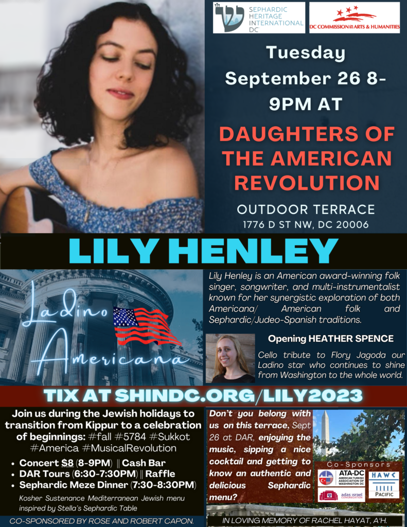 Lily Henley Ladino Americana Concert + Dinner + Tours at Daughters of the American Revolution, Sept 26