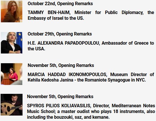 Part I – October 22 – Jew Meets Greek: An Overview of the History of Greek Jewry; Part II – October 29 – The Holocaust Years: How My Family Survived; Part III – November 5 – Customs and Rituals of Greek Jews: A Celebration of Family, Holidays and Culture.